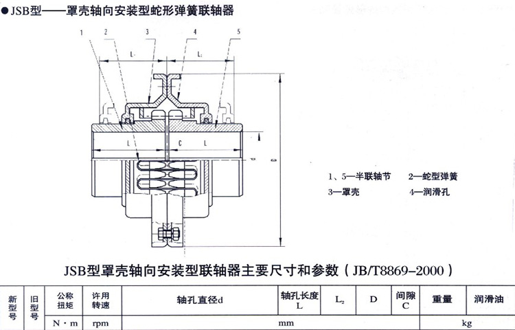 【JSB - type shield shell axial installation type snake-like spring coupling】