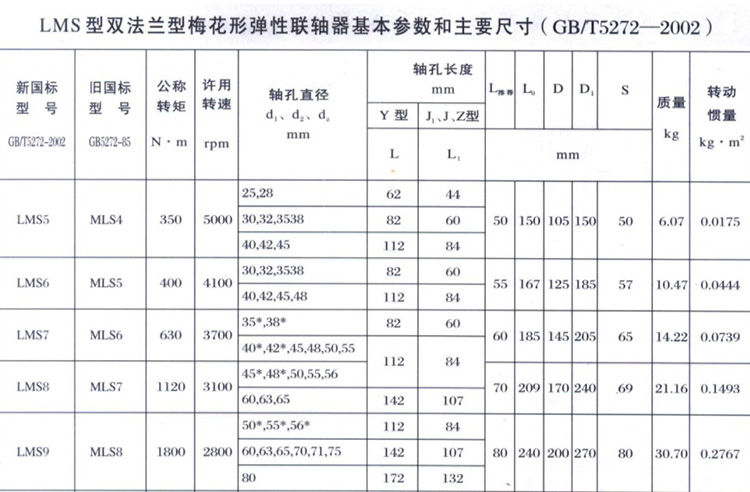 【LMS - type double flange type quincunx elastic coupling】